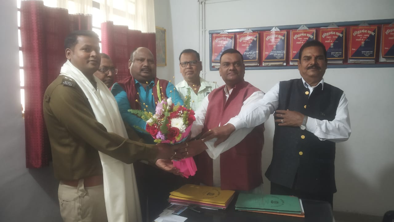 वैश्य जागृति मंच के संयोजक सह मुखिया उमेश साव तथा जय भवानी एचपी गैस के संचालक प्रमोद कुमार सिंह ने सोमवार को नए थाना प्रभारी चंदन कुमार को शाल व बुकें देकर स्वागत किया। मौके पर थाना प्रभारी ने कहा कि हरिहरगंज थाना क्षेत्र में शांति और विधि-व्यवस्था बनाए रखना उनकी प्राथमिकता है। वहीं उन्होंने कहा कि क्षेत्र में आपसी सौहार्द और शांतिपूर्ण माहौल के लिए पुलिस व पब्लिक के बीच बेहतर संबंध जरूरी है। लोगों के सहयोग के बिना पुलिस प्रशासन अधूरा है। मौके पर विजय मिश्रा, हरेन्द्र प्रसाद सिंह, मिथलेश कुमार पाण्डेय आदि उपस्थित थे।