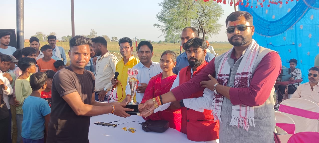 बाबा विश्वकर्मा क्रिकेट टूर्नामेंट के फाइनल मैच बटसारा के मैदान में शुक्रवार को खेला गया। जिसमें सखुआ की टीम ने पाल्हे खूर्द को छ: विकेट से हराकर कप पर कब्जा जमा लिया। पूर्व जिप प्रत्याशी लक्ष्मी रवि एवं समाजसेवी महाराणा प्रताप सिंह ने विजेता उपविजेता टीम को ट्राफी देकर सम्मानित किया। पहले बल्लेबाजी करते हुए पाल्हे खूर्द की टीम 157रन बना कर आउट हो गई। जवाबी पारी खेलने उतरी सखुआ की टीम चार विकेट पर 157 रन बनाकर विजेता बनी। मैन आफ द मैच का पुरस्कार सखुआ के सौरभ कुमार एवं मैन ऑफ द सीरीज का पुरस्कार विशाल को दिया गया। पूर्व जिप प्रत्याशी लक्ष्मी रवि ने कहा कि अब खेल के माध्यम से भी युवा अपना बेहतर कैरियर बना सकते हैं। युवा समाजसेवी महाराणा प्रताप ने कहा कि इस तरह के आयोजन से ग्रामीण क्षेत्र के युवाओं की प्रतिभा निखरेगी। खेल से लोगों में सकारात्मक सोच का भावना जागृत होती है। आयोजन समिति के अध्यक्ष विमलेश विमलेश विश्वकर्मा ने कहा कि गांव के युवाओं की प्रतिभा को निखारने के लिए ही प्रत्येक वर्ष टूर्नामेंट का आयोजन किया जाता है। हैट्रिक छक्का मारने वाले दो खिलाड़ियों को समाजसेवी महाराणा प्रताप ने 500- 500 रूपए नगद पुरस्कार दिया।इस मौके पर वार्ड सदस्य रामलाल विश्वकर्मा, इंद्रजीत विश्वकर्मा, पवन सिंह, सुजीत सिंह सहित कई लोग मौजूद थे।