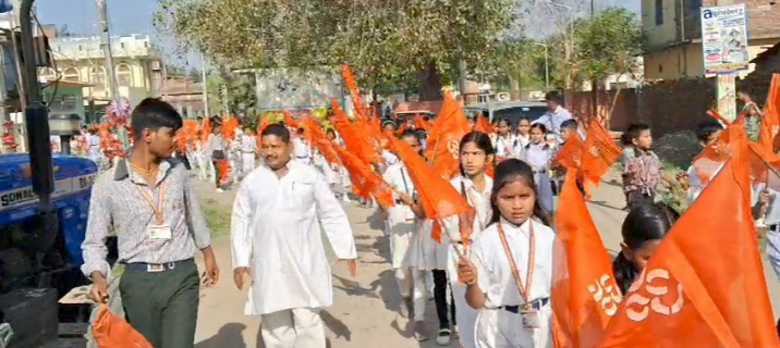 विद्या भारती झारखंड द्वारा संचालित सरस्वती शिशु विद्या मंदिर हरिहरगंज हिन्दू नववर्ष चैत्र शुक्ल प्रतिपदा विक्रम संवत 2081 के अवसर पर मंगलवार को घोष के साथ भैया बहनों ने संचलन किया। भैया बहनों ने हाथों में ध्वज पताका लेकर मुख्य मार्ग से गुजरते हुए नगर वासियों को हिन्दू नव वर्ष की शुभकामनाएं दीं ।इस दौरान प्रिशा लाइब्रेरी के प्रोपराइटर प्रेम गौरव के द्वारा भैया बहनों को मीठा और पानी देकर नव वर्ष की शुभकामना दी गई। झंडा चौक पर भैया बहनों के ऊपर पुष्प वर्षा की गई एवं शरबत ,बिस्कुट कुरकुरे देकर स्वागत किया गया । इस पुनीत कार्य में मुकेश प्रसाद शौंडिक, सत्यनारायण प्रसाद शौंडिक, राजेश प्रसाद शौंडिक, नीतीश प्रसाद शौंडिक, पंकज शौंडिक, सुनील शौंडिक,गोलू शौंडिक का भरपूर योगदान रहा। वहीं संचलन कार्यक्रम को सफल बनाने में विद्यालय के घोष प्रमुख आचार्य मोहन ठाकुर, हंसराज गुप्ता, संजय कुमार सिंह, रामप्रवेश कुमार, अंकित कुमार, नीलिमा मेहता, सुनीता कुमारी ,अंजू कुमारी, प्रियंका कुमारी अग्रणी भूमिका निभाए । वहीं विद्यालय के प्रधानाचार्य विजयेंद्र प्रसाद ने भैया बहनों को हिन्दू नव वर्ष की शुभकामना एवं नगरवासियों का धन्यवाद ज्ञापन किया।