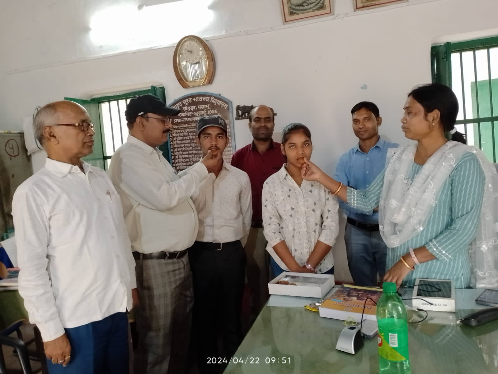 पलामू जिले अंतर्गत पंडवा प्रखंड स्थित प्लस टू सूरत उच्च विद्यालय लोहड़ा की हेडमास्टर दिव्या टोप्पो और शिक्षकों ने विधालय से जिले में टाप टेन में स्थान बनाने वाले विद्यार्थियों को मिठाई खिलाकर हौसला बढ़ाया। प्रधानाचार्य दिव्या टोप्पो ने अपने विद्यालय से 8 छात्रों को जिले में टॉप 10 में आने पर अपने विद्यालय के छात्रों, शिक्षकों और छात्रों के माता-पिता को बधाई दिया। उन्होंने कहा कि छात्रों के मेहनत और शिक्षकों के बेहतर मार्गदर्शन में बच्चे बेहतर किये है। जिसका परिणाम है कि प्रतिवर्ष इस विधालय के बच्चे राज्य और जिला में विगत कई वर्षों से विधालय का नाम रौशन किये है। इस मौके पर प्लस टू सूरत उच्च विद्यालय लोहड़ा के शिक्षक अभिषेक कुमार दुबे, सतीश कुमार मेहता, अभिषेक कुमार गुप्ता, अनुकूल, संजय, एस के नाहर, सुशील सिंह समेत कई शिक्षक उपस्थित थे।