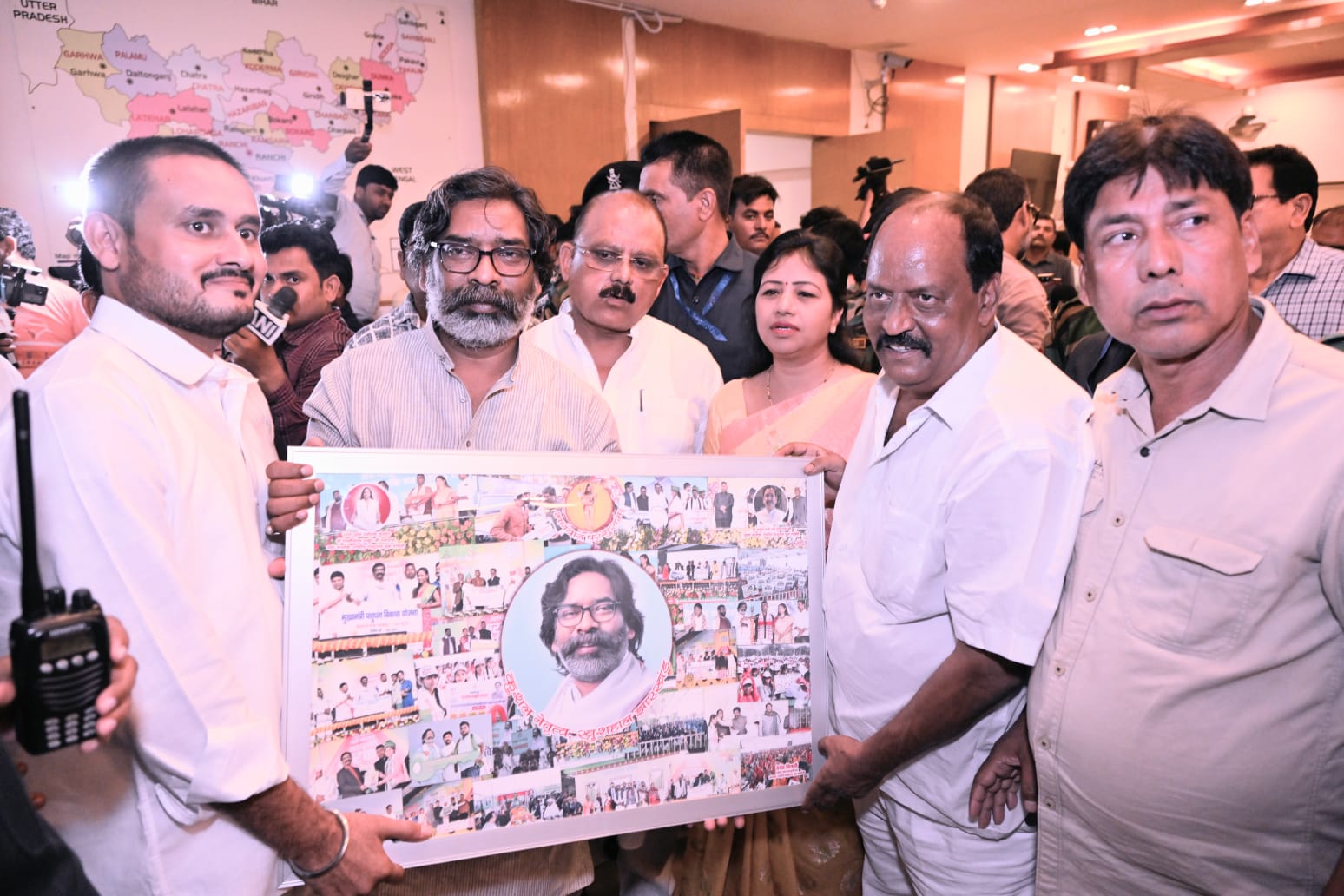 विधानसभा चुनाव की सरगर्मी तेज है, लेकिन सरकार एक्शन मोड में है। ऐसे में दूसरी बार अल्पकाल के लिए मुख्यमंत्री बने हेमंत सोरेन से मिलना जितना मुश्किल है उससे ज्यादा आसान जनता की समस्याओं का निराकरण कराना है। क्योंकि संवेदनशील मुद्दों पर लोकप्रिय झारखंडी जननायक हेमंत सोरेन गंभीरता दिखा रहे हैं। झारखंड मंत्रालय में पलामू के सेवादार सह दिग्गज झामुमो नेता दीपक तिवारी एवं पूर्व केन्द्रीय समिति सदस्य देवेंद्र तिवारी ने मुख्यमंत्री हेमंत सोरेन से मुलाकात कर जिले की ज्वलंत समस्याओं के निराकरण के लिए ज्ञापन सौंपा। तिसरी बार मुख्यमंत्री बनने पर लोकप्रिय सीएम हेमंत सोरेन को पुष्पगुच्छ देकर बधाई दी, वहीं लगातार तीसरी बार मंत्री पद की शपथ लेने पर पलामू प्रमंडल की सरकार मिथलेश ठाकुर को विकास का नया रंग गढ़ने पर धन्यवाद ज्ञापित किया। दीपक तिवारी ने कहा कि झारखंडी अस्मिता को बचाने की लड़ाई लड़ने वालों में हेमंत सोरेन का नाम अग्रणी भूमिका में है। उनका मुख्यमंत्री बने रहना झारखंड राज्य एवं राज्य की जनता के हित में है। इस दौरान ज्ञापन सौंप कर पलामू में कुछ माह से बेलगाम हुई अपराधिक घटनाओं पर ध्यानाकृष्ट कराया। साथ ही बताया कि पुलिसिया जांच, अनुसंधान में जनता को जद्दोजहद करना पड़ रहा है, जिससे लोकप्रिय जनता की सरकार का छवि खराब हो रही है। पलामू में अपराध पर अंकुश लगाने के लिए कानून को सख्ती से काम करना पड़ेगा। जिसपर त्वरित संज्ञान लेते हुए मुख्यमंत्री ने मंत्री से विमर्श कर मामलों पर संज्ञान लेते हुए कारवाई करने का भरोसा दिया। साथ ही अनुसुचित जाति छात्रावास के छत्त से पानी टपकने, फेज टू पाइपलाइन, लॉ एंड ऑर्डर को दुरूस्त करने पर आवश्यक कदम उठाने की बात कही। वहीं पूर्व केंद्रीय समिति सदस्य सह राष्ट्रीय परशुराम युवा वाहिनी के प्रदेश अध्यक्ष देवेंद्र तिवारी ने भगवान परशुराम का आशिर्वाद रूपी कुशल नेतृत्व खुशहाल झारखंड की जीवंत झांकियों से भरी यादगार तस्वीर मुख्यमंत्री को भेंट की। साथ ही आगामी विधानसभा में जीत के लिए अग्रिम शुभकामनाएं दी। साथ ही बताया कि पलामू जिला शुरू से सरकारी उपेक्षा का दंश झेलता आया है। अब पलामू की जनता को झारखंड सरकार पर विश्वास बढ़ा है। हेमंत सोरेन सरकार में हो रही नियुक्ति से उम्मीदें बढ़ी है। बीजेपी के सांसद विधायकों से मोह भंगा हुआ है। साथ ही हेमंत सरकार के जनोपयोगी कार्य से पलामू में जनाधार बढ़ा है। मौके पर झामुमो नेता परवेज अख्तर मौजूद थे।