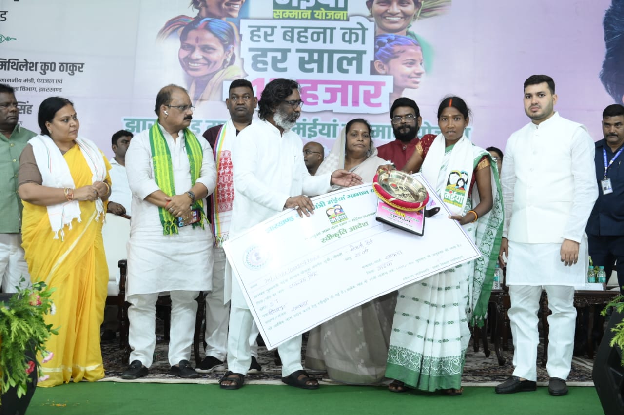 गुरुवार को चियांकी हवाई अड्डा परिसर में आयोजित झारखंड मुख्यमंत्री मंईयां सम्मान योजना (जे. एम. एम. एस. वाई.) के प्रमंडल स्तरीय कार्यक्रम में मुख्यमंत्री हेमन्त सोरेन शामिल हुए। इस अवसर पर मुख्यमंत्री ने इस योजना के लाभुकों के बैंक खाते में डीबीटी के माध्यम से प्रथम क़िस्त की सम्मान राशि का हस्तांतरण।किया ।