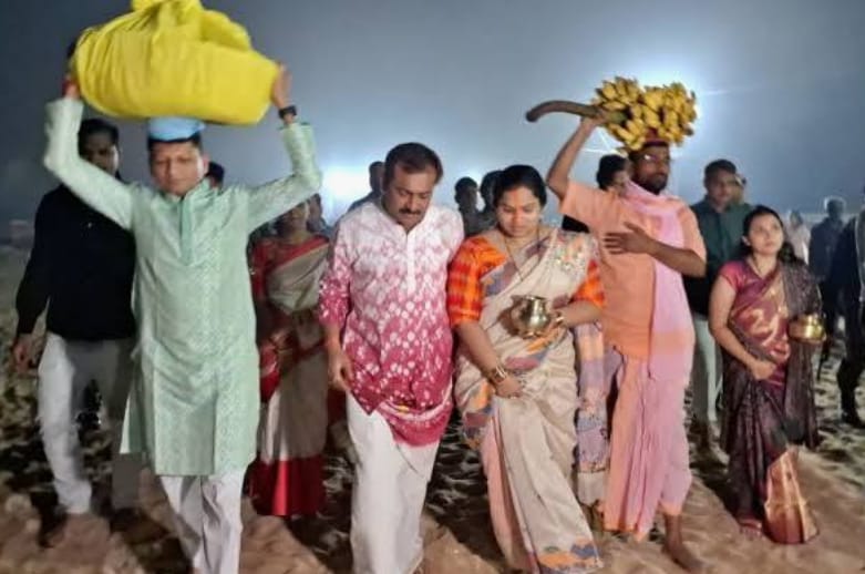 झारखंड के पलामू में इस बार छठ पर्व के मौके पर बेहद अद्भुत नजारा देखने को मिला. जहां केरल की रहने वाली पलामू एसपी रीष्मा रमेशन ने छठ पूजा की. वहीं कर्नाटक के रहने वाले पलामू रेंज के डीआईजी वाईएस रमेश अपने माथे पर दउरा लेकर एसपी आवास से छठ घाट तक गए. यह नजारा देख पलामू के लोग बेहद खुश हुए. क्योंकि छठ पूजा मुख्य रूप से झारखंड, बिहार और उत्तर प्रदेश में मनाई जाती है.आस्था का महापर्व छठ शुक्रवार को भगवान भास्कर को अर्घ्य देने के बाद संपन्न हो गया. केरल की रहने वाली पलामू एसपी रीष्मा रमेशन ने छठ व्रत रखा था. शुक्रवार को उदयीमान सूर्य को अर्घ्य देने के लिए घाट पर जाते समय पलामू रेंज के डीआईजी वाईएस रमेश माथे पर दउरा उठाकर रखकर घाट तक ले गए. इस दौरान एसीबी एसपी अंजनी अंजन ने भी दउरा उठाया. जिसके बाद घाट पर एसपी रीष्मा रमेशन ने भगवान सूर्य को अर्घ्य दिया