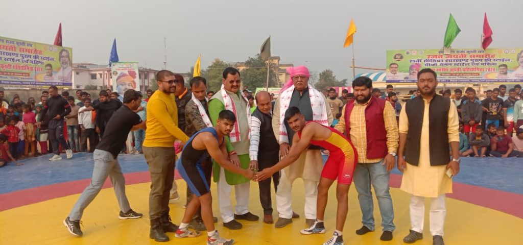 उन्होंने कुश्ती प्रतियोगिता के सुव्यवस्थित आयोजन के लिए प्रखंड प्रशासन व कुश्ती संघ को बधाई दी । इसके पहले आयोजन कमिटी ने मुख्य अतिथि व उनके बड़े भाई ख्याति प्राप्त पहलवान काशीनाथ सिंह, विशिष्ट अतिथि सीओ जितेन्द्र कुमार, थाना प्रभारी बिमल कुमार को अंगवस्त्र, पगड़ी तथा पुष्पहार देकर स्वागत किया। बाद में मुख्य अतिथि ने राज्य तथा जिला कुश्ती संघ का ध्वजारोहण कर प्रतियोगिता का शुभारंभ किया। वहीं राज्य कुश्ती संघ के महासचिव रजनीश कुमार ने मुख्य अतिथि का खिलाड़ियों से परिचय कराया। बाद में कुश्ती के दौरान ग्रिको रोमन तथा फ्री स्टाइल शैली में विभिन्न भार वर्ग के महिला पुरुष खिलाड़ियों ने अपना दमखम दिखाया। इस अवसर पर जिला कुश्ती संघ के अध्यक्ष कान्हा सिंह, प्रभारी चिकित्सा पदाधिकारी डॉo गोपाल प्रसाद, समाजसेवी विकास तिवारी, अरुण कुमार मिश्रा, गौतम राज, मनकू सिंह, लालबहादुर सिंह, मुखिया जितेंद्र पासवान, डाo अनिल पासवान, कपिलदेव राम, चितरंजन दास, रंजीत गुप्ता, मथुरा साव ,आशु मिश्रा, बिरजू चन्द्रवंंशी, कमल मिश्रा,सहित बड़ी संख्या में दर्शक उपस्थित थे।