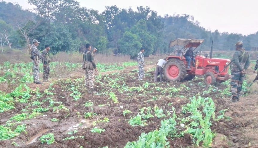 नौडीहा बाजार थाना अंतर्गत ख़ैरादोहर पंचायत के बाराख़ांड गांव एवं गुवादाग क्षेत्र में वन भूमि पर अवैध रूप से की जा रही अफीम की खेती के खिलाफ प्रशासनिक कार्रवाई की गई। नौडीहा बाजार पुलिस एवं साराईडीह पिकेट की संयुक्त टीम द्वारा यह कार्रवाई की गई, जिसमें लगभग 07 एकड़ (बाराख़ांड) एवं 05 एकड़ (गुवादाग) क्षेत्र में लगी अवैध अफीम की फसल को ट्रैक्टर द्वारा विनष्ट किया गया।