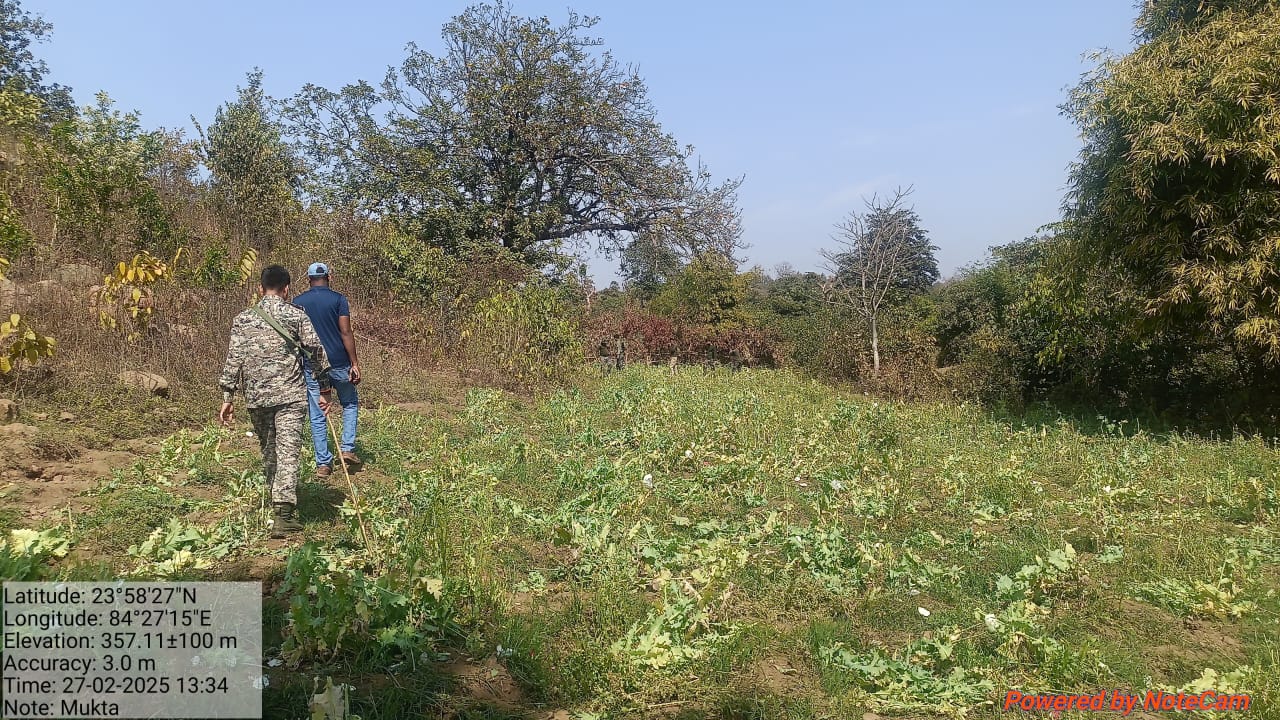 2. पांकी थाना क्षेत्र अंतर्गत ग्राम मुक्ता एवं परहिया टोला के वन भूमि/गैर मजरूआ भूमि पर फैली करीब 08 एकड़ में लगी अवैध अफीम/पोस्ते की खेती को विशेष अभियान चलाकर नष्ट किया गया।