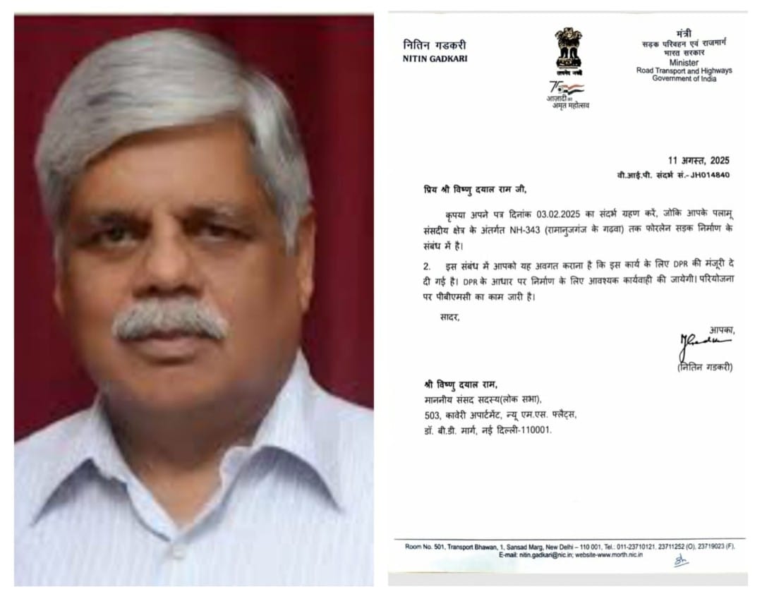 राम ने बताया कि उक्त संबंध में सड़क परिवहन एवं राजमार्ग मंत्रालय, भारत सरकार के माननीय मंत्री श्री नितिन गडकरी जी को पत्र लिखकर एवं व्यकितगत रूप से मुलाकात कर गढ़़वा से रामानुजगंज तक जर्जर सड़क को फोरलेन में परिवर्तीत कर निर्माण के लिए अनुरोध किया था। माननीय मंत्री जी के कार्यालय के पत्रांक वी0आई0पी0 संदर्भ सं0-JH014840 दिनांक 11 अगस्त 2025 प्राप्त हुआ है जिसमें उक्त परियोजना के निर्माण के लिए विस्तृत प्रोजेक्ट रिपोर्ट (DPR) की स्वीकृति की जानकारी दी गयी है। उक्त फोरलेन सड़क में रंका बाईपास का निर्माण किया जाएगा। विदित है कि यह सड़क 2 लेन मार्ग है एवं छतीसगढ़ राज्य को झारखंड राज्य के पलामू संसदीय क्षेत्र के गढ़वा जिला को जोड़ती है। इस सड़क के फोरलेन निर्माण होने से जनता का आवगमन में सुगम होगी।