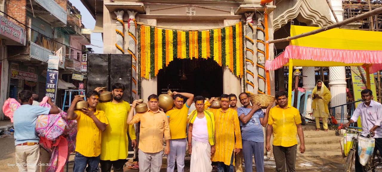 प्रखंड क्षेत्र में सोमवार को कलश स्थापना होने के साथ ही शारदीय नवरात्र महोत्सव आरंभ हो गया । सुबह में मेन बाजार स्थित दुर्गा मंदिर से ढोल ताशा, डीजे के साथ जलयात्रा निकाली गई । जो नगर भ्रमण करते हुए बटाने नदी तट पर पहुंची । जहां से जल कलश में भर कर मंदिर मे स्थापित किया गया । साथ ही पुजारी पंडित धनंजय मिश्रा के द्वारा श्री दुर्गा सप्तशती का सस्वर नवाहृ पाठ से पूरा शहर भक्तिमय बन गया है । वहीं रात्रि मे अखाड़ा पूजन कार्यक्रम संपन्न हुआ । आयोजक नवयुवक सांस्कृतिक समिति के द्वारा मंदिर तथा आसपास के परिसर मे रोशनी की शानदार सजावट करने के साथ शहर मे हर तरफ ध्वनि विस्तारक लगाया गया है । उधर बजरंग दल बेलौदर, जय भवानी संघ महाराजगंज के अलावे तेंदुआ, सूलतानी, बभंडी , पिपरा,ढाब,अंबा सहित दर्जनों गांवों में कलश स्थापना के साथ शारदीय नवरात्र महोत्सव का आगाज हुआ। जल यात्रा में पूजा समिति के अध्यक्ष ओम प्रकाश अकेला , सचिव विकास विश्वकर्मा, भोला गुप्ता, ज्ञान प्रकाश,अरुण स्वर्णकार, बीनू जायसवाल, विश्वदीप कुमार,संतोष प्रजापति, रिंकू शौंडिक, विकास जायसवाल, विजय जायसवाल, बल्लू बलराम, गोपाल प्रसाद, रामजी सिंह,पंकज कुमार, आशीष जायसवाल,दिलीप कुमार, तुषार कुमार,दिलीप स्वर्णकार,दिनेश स्वर्णकार, करण राजवीर, शशि कुमार, अखिलेश विश्वकर्मा, मुकेश मेहता, रविन्द्र यादव सहित कई लोग शामिल थे ।