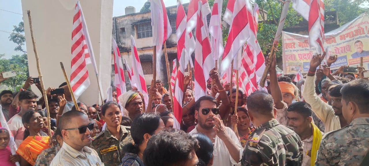 सैकड़ों ग्रामीणों ने सरना झंडा लेकर जल–जंगल–जमीन बचाओ का नारा लगाया ।81 वर्षीय शिवराज सिंह ने आखिरी सांस तक जंगल बचाने की प्रतिज्ञा ली ग्राम सभा की फर्जी प्रक्रिया की जांच और लीज रद्द करने की मांग।मुख्यमंत्री के नाम ज्ञापन सौंपा गया।संघर्ष समिति का नारा पेड़ बचाओ, पहाड़ बचाओ,